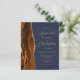 A borda esquerda deste elegante convite de casamento moderno apresenta uma cor de água laranja queimada, aparada com falsa brilho dourado. O texto personalizável combina o script dourado e as fontes sans serif em um fundo azul marinho escuro. O verso apresenta uma design de cor laranja queimada e dourada.