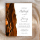 A borda esquerda deste elegante convite de casamento moderno apresenta uma cor de água laranja queimada, aparada com falsa brilho dourado. O texto personalizável combina a escrita manual de cinzas de carvão, as fontes copperplate e itálico. O verso apresenta uma design de cor laranja queimada e dourada.