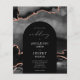 Este design moderno apresenta uma forma de arco preto sobre um fundo de aquarela preta, cortada com brilho sujo de ouro rosa. A palavra "casamento" aparece em um roteiro branco elegante. Personalize o convite com os nomes da noiva e do noivo numa combinação de tipografia serif e sans serif e os detalhes do casamento em itálico.