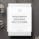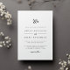 Personalize este convite de casamento clássico e elegante com seu monograma ou duograma junto com um guião decorativo. Adicione seus detalhes de casamento abaixo em eterno preto com acentos de script de caligrafia. Uma bela escolha em preto clássico e branco para casamentos formais em qualquer estação.