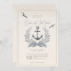 Elevem a sua celebração de casamento com esta âncora cativante e o convite de casamento do Herald, enfeitado com gaivotas graciosas. Este elegante design, com um esquema de cores clássico de (bege arenoso) azul e cinza, evoca um encanto marítimo eterno que é perfeito para núpcias litorâneas.