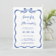 O Cartão de Convite para Casamento de Arcos Azuis é uma encantadora mistura de vintage elegância e elegância moderna, perfeita para casais que procuram um anúncio único e memorável para o seu dia especial. Este convite apresenta uma espantosa paleta de cor azul real, evocando uma sensação de sofisticação real que estabelece a palco para uma celebração de casamento verdadeiramente memorável. No centro do convite está um quadro de arco de fita desenhado à mão, que serve como ponto focal da design. Esse detalhe mesquinho, mas elegante, adiciona um toque de romance e brincadeira ao convite, capturando a alegria e o entusiasmo da ocasião. O quadro do arco encaixa os detalhes do casamento, chamando a atenção para as informações essenciais com talo casual de coquetes. A tipografia utilizada ao longo do convite é cuidadosamente selecionada para complementar a estética global. A elegante tipografia moderna é aliada a uma escrita de tendências, criando um equilíbrio harmonioso entre estilos clássicos e contemporâneos. Essa combinação de fontes adiciona interesse visual e profundidade ao design, ao mesmo tempo que garante que os detalhes do casamento sejam veiculados de forma clara e bela. Vintagem sutil e elementos retrorreflectores são incorporados ao design, acrescentando uma sensação de nostalgia e charme. Do arco desenhado à mão à escrita caprichosa, cada detalhe do convite expele um apelo eterno que é elegante e único. O uso do azul real como a cor primária melhora o sentido de elegância regal do convite, ao mesmo tempo que adiciona uma reviravolta moderna à estética geral. A matiz rica transmite uma sensação de luxo e sofisticação, fazer-a uma escolha ideal para casais que querem fazer uma declaração com seus convites para o casamento. Este Cartão de Convite para Casamento de Arco Azul é perfeito para casais que buscam uma mistura de charme de safra e sofisticação moderna. Sua design única, detalhes caprichosos, e a elegante tipografia fazem dela uma escolha de destaque para um casamento que valoriza a criatividade, o estilo e o romance.