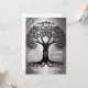 Convite de casamento da árvore da vida com detalhes de prata e preto.