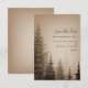 Um elegante convite de casamento com uma ilustração de árvores perenes sobre um fundo marrom.