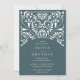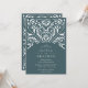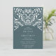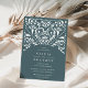 Convites de casamento vintage elegantes em ornamentado verde-fonte rico que detalha o que evoca a aparência do papel cortado no estilo papel picado.