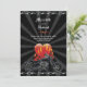 Bata na estrada aberta com um convite de casamento que reflete o seu amor como casal para a sua bicicleta. Uma motocicleta esboçada em gráfico é acentuada por um coração flamejante contra um fundo preto robusto de rajadas, com uma borda superior e inferior de chamas de cromo fino. A imagem da motocicleta é repetida duas vezes ao contrário para enfatizar seus detalhes do casamento. Disponível com produtos correspondentes.