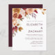 Este convite de casamento moderno apresenta um arranjo floral de aquarela em ricos tons de ferrugem, terracota e burgundy no outono. Edite o texto do sans serif burgundy com os nomes dos casais e os detalhes do casamento em um fundo branco. O lado inverso é uma sombra de burgundy sólida. NOTA: os envelopes não são incluídos automaticamente nestes convites de orçamento, portanto lembre-se de escolher a opção "envelopes brancos"!