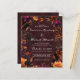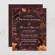 Vermelho escuro e sangrento fornece o fundo luxuoso para este convite para Casamentos outono. Rústico, flores silvestres de Boho fornecem a estrutura em laranja verde, preto e cobre profundo. Flores roxas e cor-de-rosa acendem um pouco. Perfeito para o outono tardio ou o casamento do Halloween. O texto branco tem um pouco de vibração sobre ele.