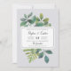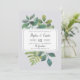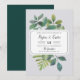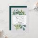 O convite de casamento botânico da Vintage mostra seus detalhes de casamento organizados exclusivamente em blocos escura e letras de caligrafia, sobre um fundo de folhas de cor verde-d'água pintadas, galhos, samambaias e folhagem. Convites invertendo a verde-escuro sólido.