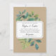 O convite de casamento botânico da Vintage mostra os detalhes do seu casamento em um bloco preto e branco e em letras de caligrafia, num fundo de folhas de cor verde-d-água pintadas, galhos e samambaias. Um fundo kraft manchado adiciona encanto rústico. Convites invertendo para pastel verde.