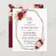 Monograma Elegante Orçamento Borgonha Dourada Blush Floral Wedding Convite para Casamento Floral vem com uma simples frente monográfica com uma estrutura geométrica de ouro Marsala burgundy com texto na moda e fundo floral burgundy.