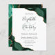 Uma esmeralda aquarela verde agate design aparada com falso brilho de ouro aparece em dois cantos deste elegante design. Personalize-o com os nomes dos casais em cinzas de carvão que escrevem manualmente num grande e pálido e verde. Adicione os detalhes do casamento em quadrinhos e fontes itálicas em um fundo branco. O verso apresenta um design verde e dourado correspondente.
