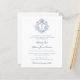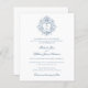 Este convite de casamento amigável ao orçamento apresenta um sofisticado design com uma crista de inspiração vintage adornada com detalhes botânicos intrincados e um monograma personalizável, oferecendo elegância ao eterno em formato compacto. A combinação refinada de fontes clássicas de serif e script que fluem transmite uma sensação de formalidade e romance, enquanto a paleta de cor azul suave melhora a estética graciosa e tradicional. A parte de trás desta opção menor e mais econômica é o vazio. Perfeito para casais que buscam elegância de barato sem comprometer o estilo, este convite equilibra lindamente o refinamento e a praticidade.