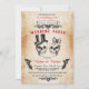 Convide seus convidados para a festa com este convite de casamento de caveira em estilo rústico. Impressão traseira incluída. Basta editar o texto para se adequar à sua festa.
