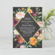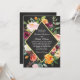 Perfeito para um casamento com tema de outono, este convite de casamento rústico para quadros de chalkboard apresenta uma mistura de flores de aquarela em bonitos tons de outono de burgundy, laranja, salmão, rosa e branco com sotaques verdes. Uma borda dourada envolve o quadro em forma de diamante com o texto desejado. O verso tem uma coroa floral correspondente à noiva e às iniciais do noivo. Edite todo o texto com seus detalhes especiais.