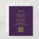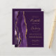 A borda esquerda deste elegante convite de casamento moderno apresenta uma cor d'água roxa, borda agitada, aparada com falso brilho dourado. O texto personalizável combina manuscritos dourados, copperplate e fontes itálicas em um fundo roxo profundo. O verso fornece espaço para detalhes do casamento em um fundo roxo sólido, junto com um código QR que os convidados podem digitalizar para visitar seu site e RSVP.
