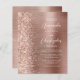 A borda esquerda deste elegante convite de casamento moderno apresenta uma borda falsa de ouro rosa. O texto personalizável combina manuscrito branco, fontes em copperplate e itálico em um fundo de metal esfregado em rosa dourado. O verso fornece espaço para detalhes de casamento em um fundo de metal escovado em ouro rosa, junto com um código QR que os convidados podem digitalizar para visitar seu site e RSVP, o que economiza o custo de impressão e envio de placas RSVP separadas.