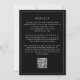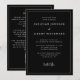 Este simples e minimalista convite de casamento moderno apresenta fontes clássicas de serifa branca num fundo preto, com palavras e frases selecionadas na caligrafia de escrita manual de na moda. Uma linha branca fina fornece um quadro retangular para o texto. No verso, adicione os detalhes do seu casamento e um código QR que os seus convidados podem digitalizar para visitar o seu site de casamento.
