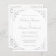 Este elegante convite de casamento formal inspirado na vintage apresenta o texto em roteiro de cinza prateada e fontes serif, enquadrado por um delicado motif de prata de vintage. O verso oferece espaço para detalhes do casamento, juntamente com um código QR que os convidados podem digitalizar para visitar seu site e RSVP, o que economiza o custo de impressão e envio de cartões RSVP separados.