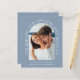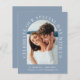 Um convite de casamento azul, tudo em um, moderno e amigável, apresentando sua foto em um quadro arquitetado cercado por "Celebrar Nosso Dia Especial Conosco" em elegante texto branco. Adicione seus primeiros nomes, data do casamento e local. No verso, personalize seu convite em uma simples tipografia branca e insira seu endereço no site do casamento para criar um código QR para seus convidados digitalizar para RSVP on-line e obter detalhes adicionais de casamento, como acomodações.
