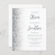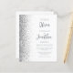 A borda esquerda deste elegante convite de casamento moderno apresenta uma borda falsa de prata. O texto personalizável combina o script de cinza e as fontes sans serif em um fundo branco. O verso fornece espaço para detalhes do casamento em um fundo branco sólido, junto com um código QR que os convidados podem digitalizar para visitar seu site e RSVP, o que economiza o custo de imprimir e enviar cartões RSVP separados.