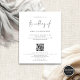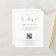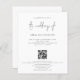 Um orçamento com um preço menor de 4,5 x 5,6" de semivrofe de 110 lb, semelhante em espessura a um cartão postal. Há um por folha. Convite de Casamento de Código QR de Script Elegante de Orçamento. Adicione seu código QR ao seu site de casamento para que seus convidados possam RSVP e ver todos os detalhes on-line sem a necessidade de gabinetes separados. Uma tipografia informal em preto para o título principal "Casamento de complementar o resto do texto que você pode facilmente personalizar".