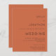 Texto Simples Terracotta Código QR Convite de Casamento. Um alternativo de 4,5 pol x 5,6 pol com preço inferior. Disponível em um STOCK DE CARTÃO SEMI-GLOSS 110 lb, que é a opção padrão (mais espesso para convites), OU um STOCK de PAPEL THINNER FINISH 80 lb FINISH (ideal para gabinetes). Adicione seu código QR ao seu site de casamento no verso faz com que esta seja uma opção conveniente para seus convidados para RSVP e veja todos os detalhes sem a necessidade de RSVP separado e cartões de detalhes. Esta design de terracota minimalista tem uma simples tipografia negra que você pode personalizar facilmente. Você também pode alterar o texto e as cores de fundo em cada lado para combinar o tema do casamento, se desejar por meio de Personalizar mais. Se precisar de ajuda com isso, por favor, me envie uma mensagem.