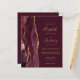 A borda esquerda deste elegante convite de casamento moderno apresenta uma cor vermelha e borrifada, com uma falsa brilha de ouro. O texto personalizável combina manuscritos dourados, copperplate e fontes itálicas em fundo burgundy. O verso fornece espaço para detalhes do casamento em um fundo de burgundy sólido, junto com um código QR que os convidados podem fazer uma varredura para visitar seu site e RSVP.