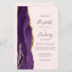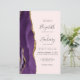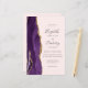 A borda esquerda deste elegante convite de casamento moderno apresenta uma cor d'água roxa, borda agitada, aparada com falso brilho dourado. O texto personalizável combina letra de escrita manual, chapa de impressão e fontes itálicas em cinzas de carvão em um fundo cor-de-rosa esbranquiçado. Adicione mais detalhes no verso, juntamente com um código QR para ajudar seus convidados a visitar seu site de casamento.