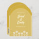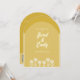 Forma moderna e bela de enviar convites a amigos e entes queridos. Este convite de casamento mostrado tem um estilo de arco com um tema natural de flores em pé no fundo. Além disso, há um código QR na parte traseira para respostas RSVP. Mostrado em ouro (frente e verso). Personalize o texto de acordo com as suas necessidades. Use a modelo para personalizar.