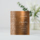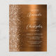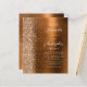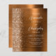 A borda esquerda deste elegante convite de casamento moderno apresenta uma borda cintilante de laranja queimada. O texto personalizável combina manuscrito branco, fontes em copperplate e itálico em um fundo vermelho de metal piscado de cor laranja queimada. O verso fornece espaço para detalhes do casamento em um fundo de metal vermelho em laranja queimado, juntamente com um código QR que os convidados podem digitalizar para visitar seu site e RSVP, o que economiza o custo de impressão e envio de placas RSVP separadas.
