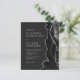 A borda direita deste elegante convite de casamento moderno apresenta uma aquarela preta, borda agitada com falso brilho prateado. O texto personalizável combina fontes de cinza prateada se, copperplate e itálico estiverem em um fundo preto de ardósia. O verso fornece espaço para detalhes do casamento em um fundo preto de slate sólido, junto com um código QR que os convidados podem digitalizar para visitar seu site e RSVP, o que economiza o custo de imprimir e enviar cartas RSVP separadas.