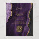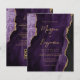 Este elegante convite de casamento apresenta uma imagem de fundo da cor da água púrpura, cortada com uma falso brilho dourado. O texto personalizável combina manuscrito, protetor e fontes itálicas de cor dourada. O verso fornece espaço para detalhes do casamento em um fundo de agata roxo correspondente, juntamente com um código QR que os convidados podem digitalizar para visitar seu site e RSVP, o que economiza o custo de imprimir e enviar cartões RSVP separados.