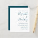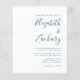Este simples convite de casamento moderno apresenta texto azul teal sobre fundo branco. Adicione os nomes da noiva e do noivo na caligrafia de escrita manual do na moda e os detalhes na fonte sans serif. O verso fornece espaço para detalhes do casamento em um fundo de terra firme, junto com um código QR que os convidados podem digitalizar para visitar seu site e RSVP. NOTA: os envelopes não são incluídos automaticamente nestes convites de orçamento, portanto lembre-se de escolher a opção "envelopes brancos"!