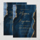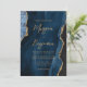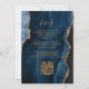 Este elegante convite de casamento apresenta uma imagem de fundo da marinho azul de aquarela agada com falso brilho dourado. O texto personalizável combina manuscritos modernos, em cores douradas, e fontes itálicas. O verso fornece espaço para detalhes do casamento em um fundo de agata azul correspondente, juntamente com um código QR que os convidados podem digitalizar para visitar seu site e RSVP, o que economiza o custo de imprimir e enviar cartões RSVP separados.