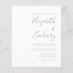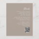 Este simples convite de casamento moderno apresenta texto neutro num fundo branco. Adicione os nomes da noiva e do noivo na caligrafia de escrita manual do na moda e os detalhes na fonte sans serif. O verso fornece espaço para detalhes do casamento em um fundo de fita sólida, junto com um código QR que os convidados podem digitalizar para visitar seu site e RSVP.