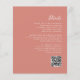 Este simples convite de casamento moderno apresenta um texto branco sobre um fundo de terracota. Adicione os nomes da noiva e do noivo na caligrafia de escrita manual do na moda e os detalhes na fonte sans serif. O verso oferece espaço para detalhes do casamento, juntamente com um código QR que os convidados podem digitalizar para visitar seu site e RSVP, o que economiza o custo de impressão e envio de RSVP separados. NOTA: os envelopes não são incluídos automaticamente nestes convites de orçamento, portanto lembre-se de escolher a opção "envelopes brancos"!
