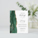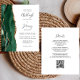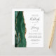 Economize o custo de imprimir e enviar cartões RSVP separados com este elegante convite de casamento de orçamento integral. A borda esquerda apresenta uma esmeralda verde aquarela agate border aparada com brilho dourado. O texto personalizável combina a escrita manual de cinzas de carvão, as fontes em copperplate e itálico em um fundo branco. O verso oferece espaço para detalhes do casamento, junto com um código QR que os convidados podem digitalizar para visitar seu site e RSVP.