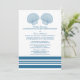 Convite para Casamento de Conchas Marítimas Náuticas Elegantes e clássicas com um par de conchas simples e uma série de faixas em azul e branco marinho escuro. Este convite temático da praia náutica pode ser facilmente personalizado com seus detalhes de casamento. Para obter mais opções de personalização, clique no botão Personalizar Ti.