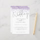 Convite de casamento de Confetti Roxo Moderno. Um tamanho maior de 5,5" x 8,5" a um preço orçamentário, em um STOCK CARD SEMI GLOSS de 110 lb, excelente de convites, aproximadamente na mesma espessura de um cartão postal, ou um estoque LINEN elegante de 110 lb - para um luxo, ligeiramente mais fino, com um valor de excelente. OBSERVE QUE OS ENVELOPES OPCIONAIS SÃO UM POUCO MAIORES EM TAMANHO A 6,75" x 9" aprox. Este alternativo de tamanho de orçamento também está disponível em outras opções de papel. O papel FELT de 100 lbs é colorido por buff, NÃO branco, então adiciona um toque rústico. O estoque de papel MATTE de 80 lb é branco brilhante, para impressão nítida, excelente para seus menus e programas, enquanto o papel SATIN de 80 lb é fino e leve, ideal para gabinetes. Casamento está em um roteiro de na moda por set no topo e na elegante tipografia abaixo com seus detalhes. Uma borda de brilho de falso roxo passa pelo topo. Personalize facilmente o resto do texto para seus próprios detalhes. Você também pode alterar as cores do texto e do plano de fundo por meio da opção personalizar mais, se desejar.