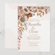 O Convite para Casamento Floral de Vintage Fall tem um arranjo floral exuberante no topo da papelaria de casamento, que inclui flores e folhas douradas, castanhas e brancas, com a quantidade certa de laranja vibrante e flores vermelhas aspergidas. Esta é uma bela escolha para um casamento elegante ou um casamento ao ar livre como um casamento de jardim ou um casamento no quintal. Essas lindas flores também se ajustados com um casamento rústico, um casamento country ou qualquer cerimônia realizada no primavera ou verão. Esta é uma escolha muito agradável para quando você realmente quer um convite para o casamento floral, mas você quer manter as cores da estação.