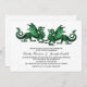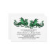 Embarque em uma união lendária com este Convite para Casamento Elegante Verde Dragão, feito para casais encantados pela fantasia e temas míticos. Esta design cativante apresenta um par de dragões medievais majestosos; as suas intrincadas escalas e elegância feroz entrelaçadas num emblema eterno de amor e força. Colocado sobre um fundo branco, o simples layout deste convite apresenta uma tipografia moderna que enquadra perfeitamente os detalhes do seu casamento e a escrita elegante para a noiva e os nomes dos noivos. Ideal para a noiva e o noivo que sonham com um tema mítico de casamento, este convite medieval de casamento transporta convidados para um reino de mito e magia.