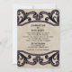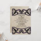 Convocação para o casamento de pássaros egoístas e góticos elegantes, apresentando um fundo bege texturizado vintage e bordas roxas florescem. Este design de aparência antiga é perfeito para um gótico ou casamento vintage. Fácil de personalizar, basta adicionar os detalhes do casamento nos campos de texto fornecidos. Clique em "Personalizar" para encontrar mais opções de personalização.