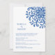 Celebre seu dia especial com um toque de elegância e sofisticação com nosso convite de casamento único e artístico. Apresentando um fundo branco pristine adornado com um padrão de simetria rotativa azul mesmerizante de pontos e pontos fazer um padrão floral, este convite captura lindamente a essência do romance eterno e do encanto moderno. Esse convite é perfeito para casais que buscam uma mistura de design e elegância clássica contemporânea, que dá o tom de um casamento que será lembrado por sua beleza e graça. Peça a sua hoje e faça seu anúncio de casamento realmente inesquecível!