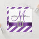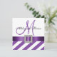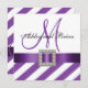 Casamento de Monogramas Roxos e Brancos com um padrão de faixas diagonais e uma fita de satin roxo IMPRESSA e um broche de diamante quadrado IMPRESSO em um design de cartão plano quadrado. Layout Design de Elke Clarke ©2012. Gráficos licenciados. Personalize com seu monograma, nomes e texto de casamento usando os prompts de seleção de "personalizá-lo" para obter mais opções de edição. As noivas adoram os convites embelezados com joias e fitas até chegarem ao escritório do posto e perceberem que os convites custarão muito mais para enviar aos convidados. Estes convites e acessórios de pacotes de casamento têm a foto da fita de satélite e o broche de diamante IMPRESSO na placa plana. Você acaba com o efeito elegante sem o custo extra e o trabalho de montagem de seus convites. Entre em contato com luxuryweddinginvitations@gmail.com para obter outras cores ou ajuda sobre o seu design ou sobre os itens correspondentes que você precisar.