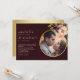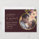 Celebre o seu amor com este convite de casamento burgundy romântico que apresenta detalhes dourados elegantes, um design de canto floral vibrante e uma foto personalizada. A paleta de cores rica e sombria e as fontes serifadas modernas tornam-no ideal para casamentos de verão e outono. Perfeito para casais que procuram um convite luxuoso, mas de coração, que combina charme atemporal com um toque pessoal.