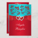 Este convite romântico de casamento floral azul e vermelho turquesa tem uma fita vermelha IMPRESSA e um arco com um par de joias de diamante IMPRESSAS e brilho vermelho FAUX juntou-se a ele. Seria perfeito para um primavera, verão, ou casamento outono, e até funcionaria bem para um casamento de destino elegante. ALÉM DISSO, se você redimensionar o convite ou se você alterar fontes ou o tamanho da fonte, parte do design e/ou texto pode ser cortada. Tudo será impressão como você vê no seu monitor. Não verei seu convite, e Zazzle NÃO corrigirá nada (digitação, mal-alinhamento, etc.). O texto e o papel são todos personalizáveis. Se precisar de ajuda para este convite, envie-me um e-mail ANTES de fazer seu pedido. Se você precisar de outros itens correspondentes, envie um email para niteowlstudio@gmail.com.