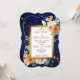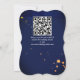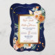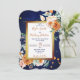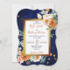 Rosas de laranja flores de creme verde marinho azul de fundo de ouro quadro de ouro floral modelo de convite para casamento com código QR RSVP no verso.