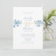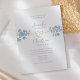 Este Convite de Casamento de Flores Silvestres Azuis Desbotados da Primavera apresenta delicadas flores silvestres azuis com detalhes de coração dourado, criando uma mistura perfeita de charme rústico e elegância romântica. Ideal para casamentos de primavera ou verão, este convite captura lindamente a frescura da estação enquanto mantém um design sofisticado e minimalista.