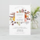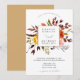 Nosso convite para o casamento no outono enquadra seus nomes com uma elegante borda de tons de outono de Burgundy, laranja, vermelha, e flores cor-de-rosa pinceladas com folhas verdes e de outono exuberantes. Personalize com suas informações ou clique em "Clique para personalizar mais" para editar estilos de fonte, tamanho e cores.